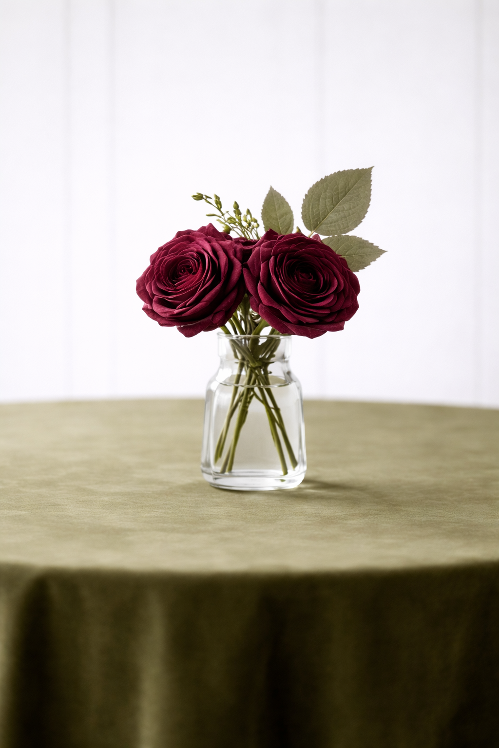 -5ft or 6ft Round Guest Table: 3 to 5 Bud vases