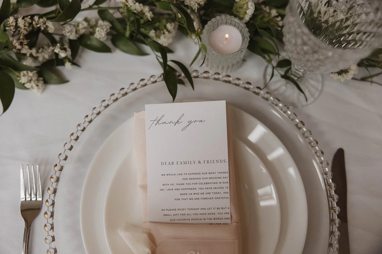 -Ensure all table decor is set as planned. We will set up and breakdown your personal decor as well as our rental decor. This includes placing escort/place cards, menus, centerpieces, candle holders, plate settings and table numbers.